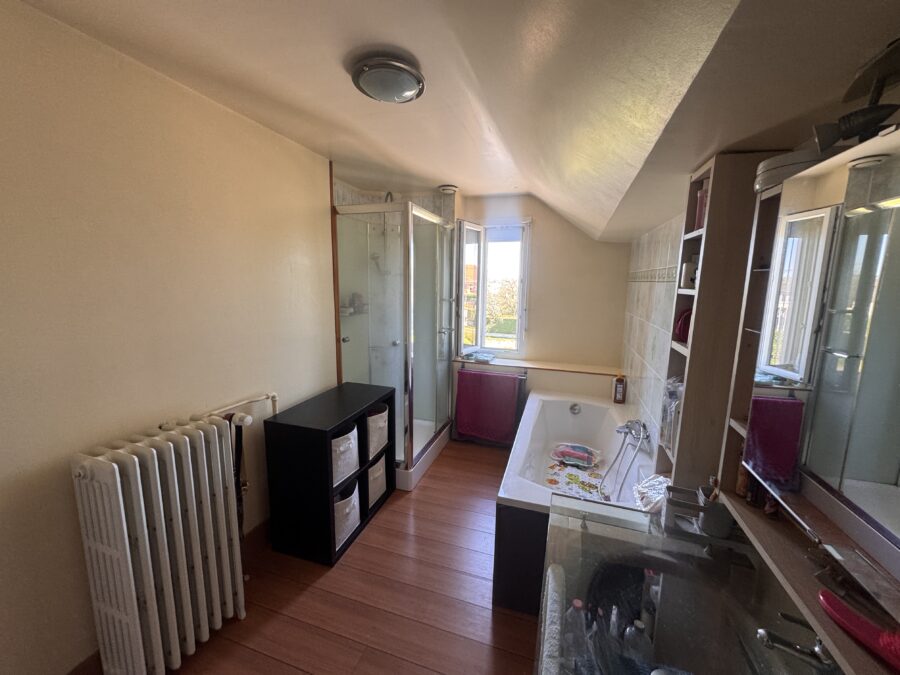 Grande salle de bains avec douche, baignoire et WC