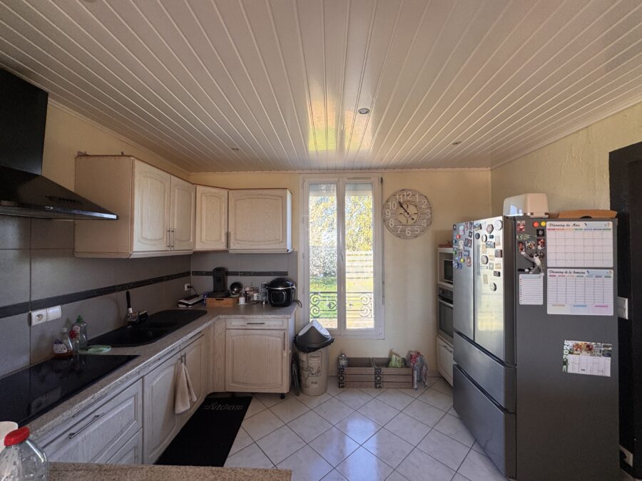 Cuisine ouverte sur salle à manger offrant également un accès à la terrasse surélevée à optimiser