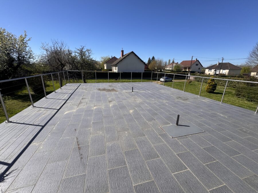 Deux terrasses, dont une vaste terrasse sur dalle au-dessus du garage